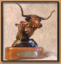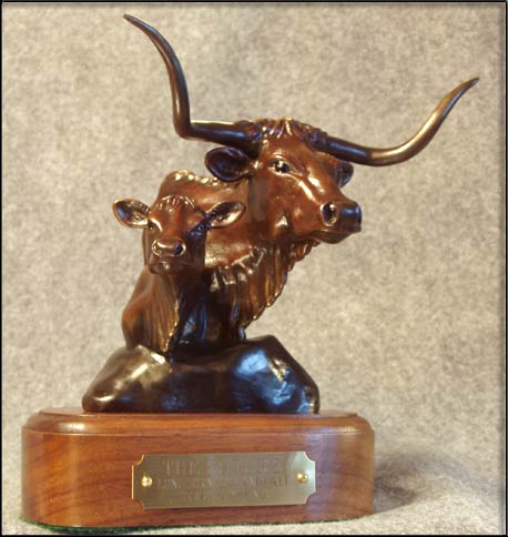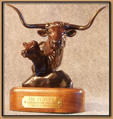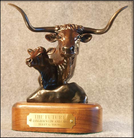 The Longhorn Cow is known to never forget her calf. In this sculpture, the mother cow shows her pride with her new baby.